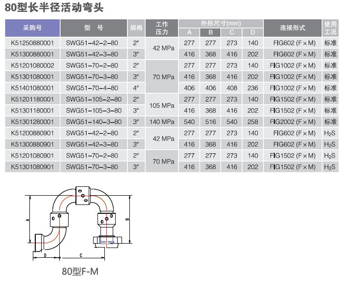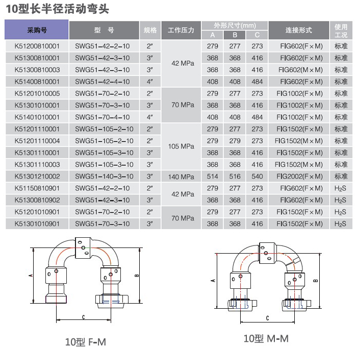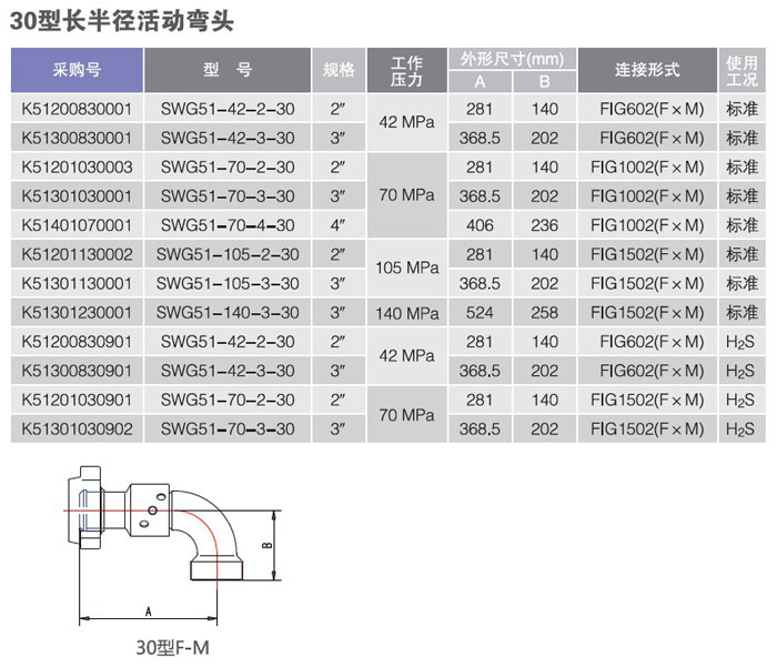 河北(běi)寶石油機械廠生產的活動彎頭是一種裝有滾珠(zhū)軸承的金屬管線接頭,其規格(gé)有1"4",額定工作(zuò)壓力14140MPa2000psi20000psi),可提供常溫、低溫和含硫氣體H2S)條件下使用的各種型號活動彎頭及修理包。
